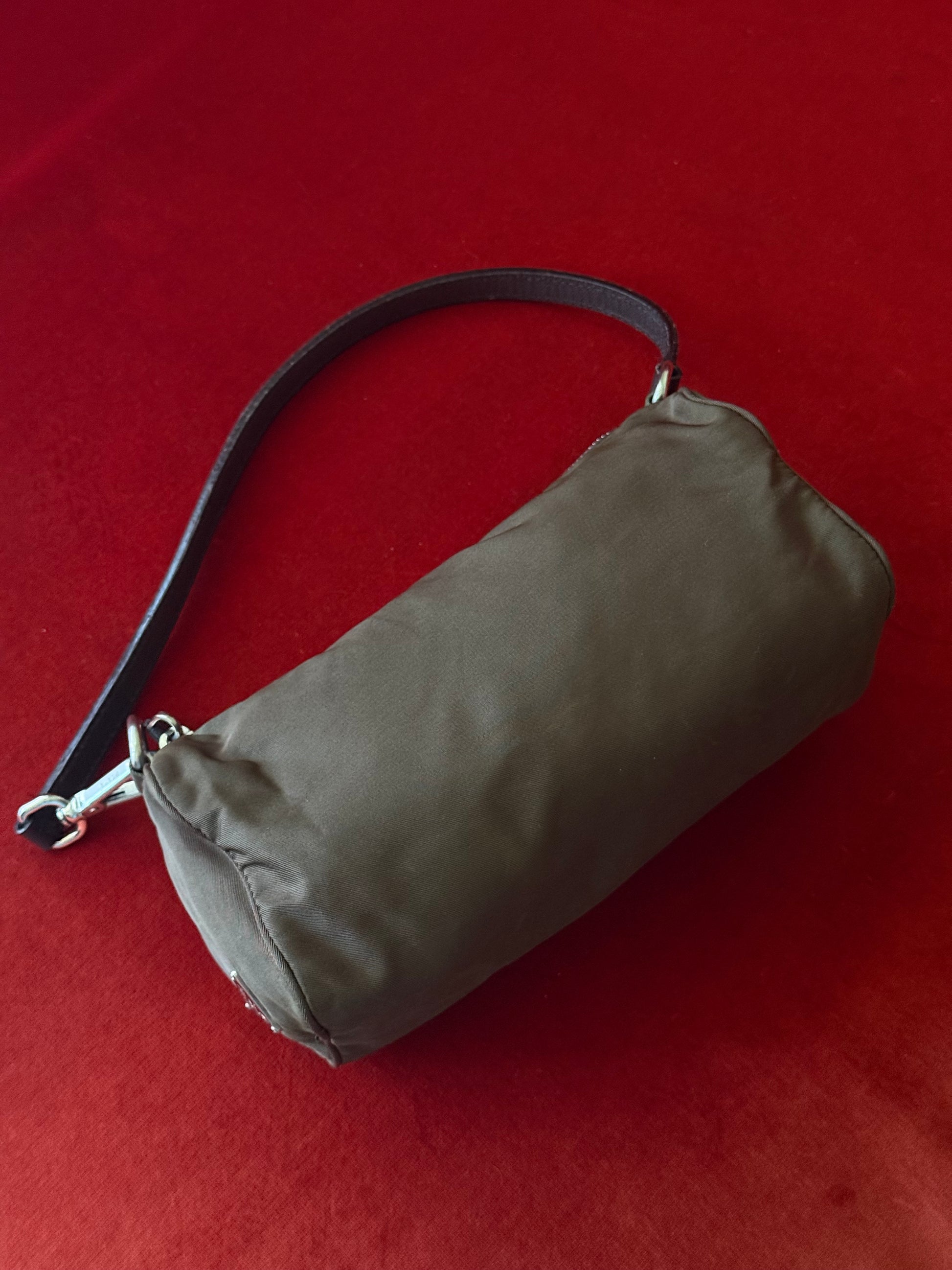 Prada mini borsa in nylon verde militare.