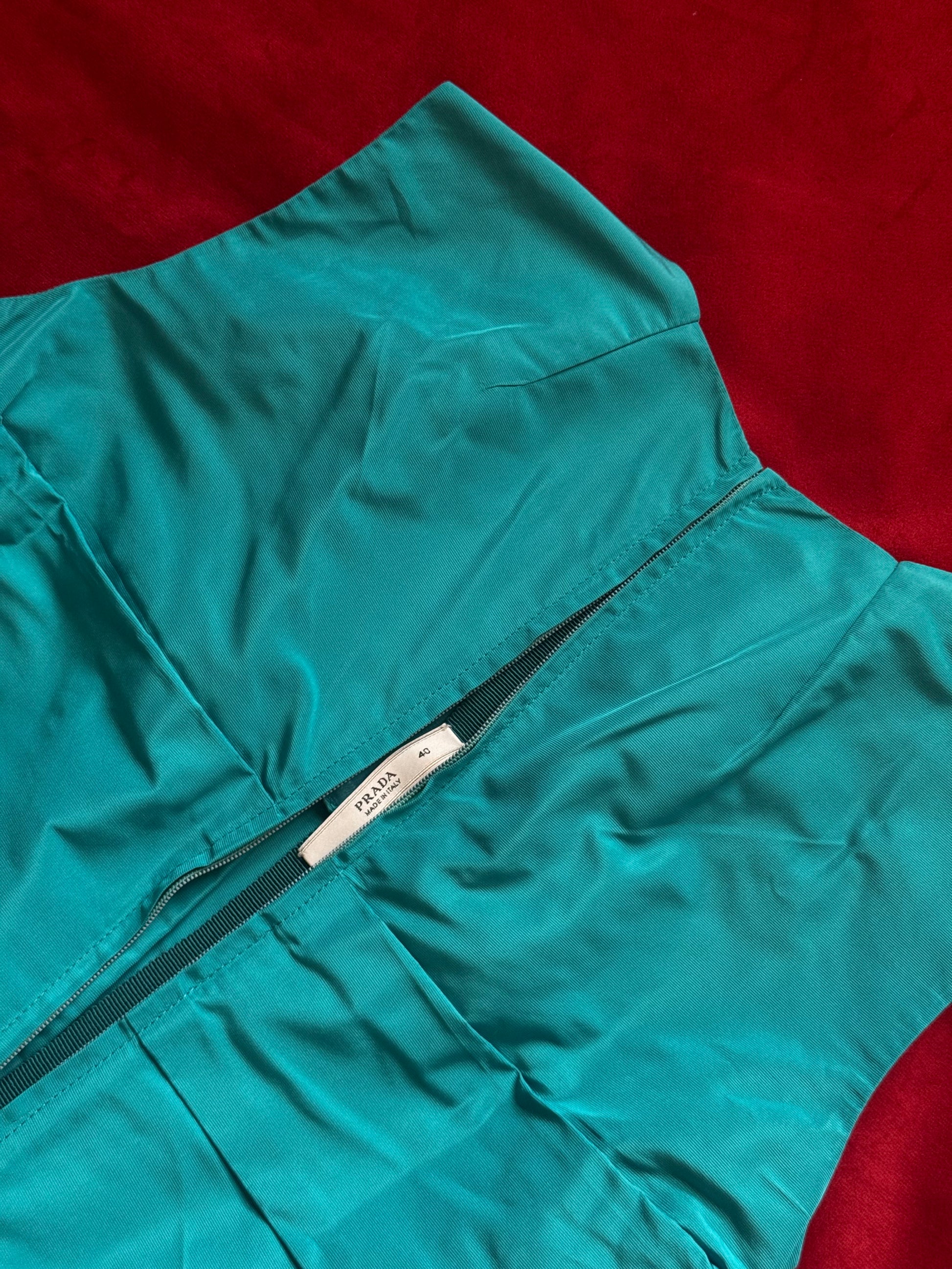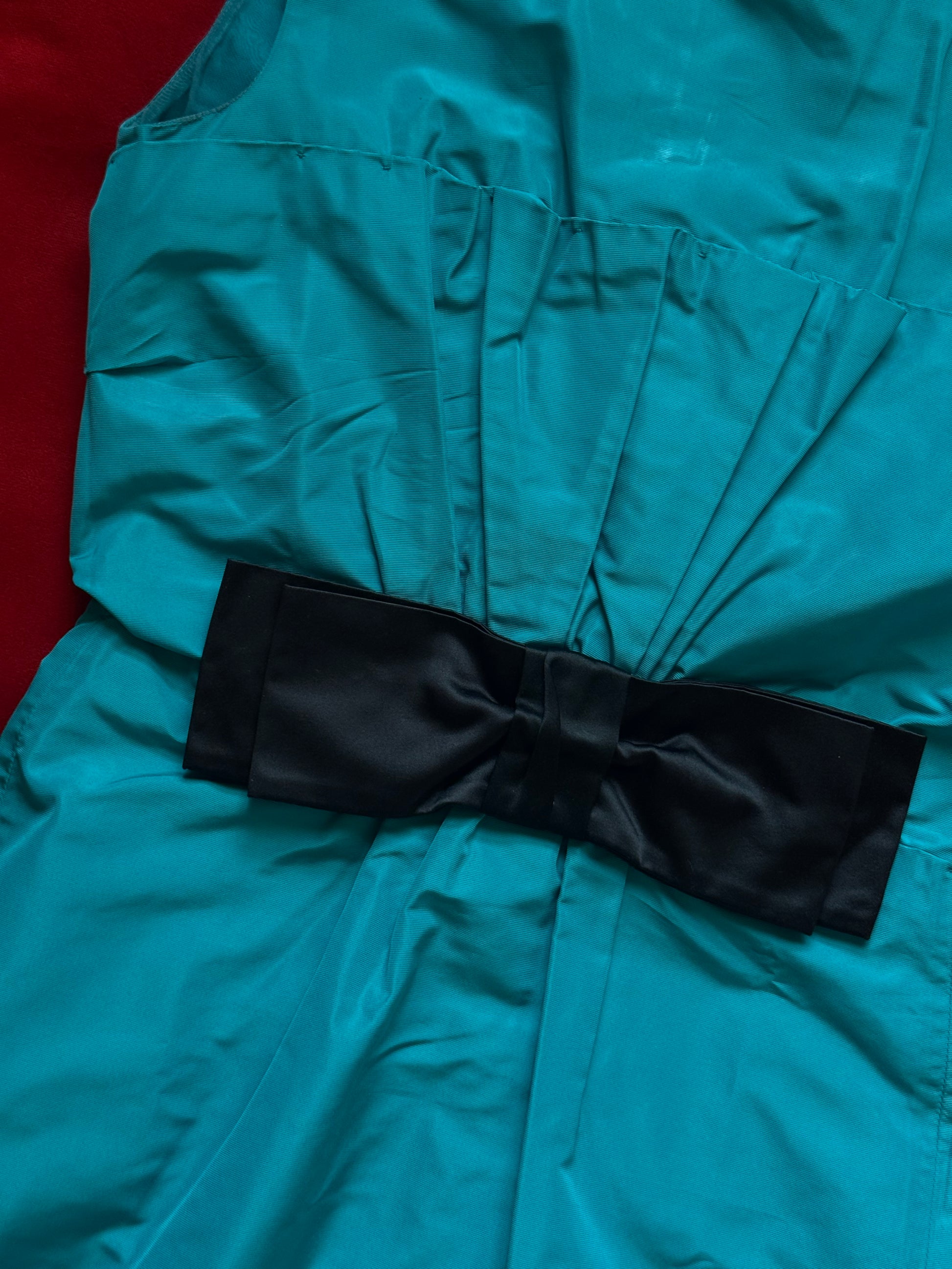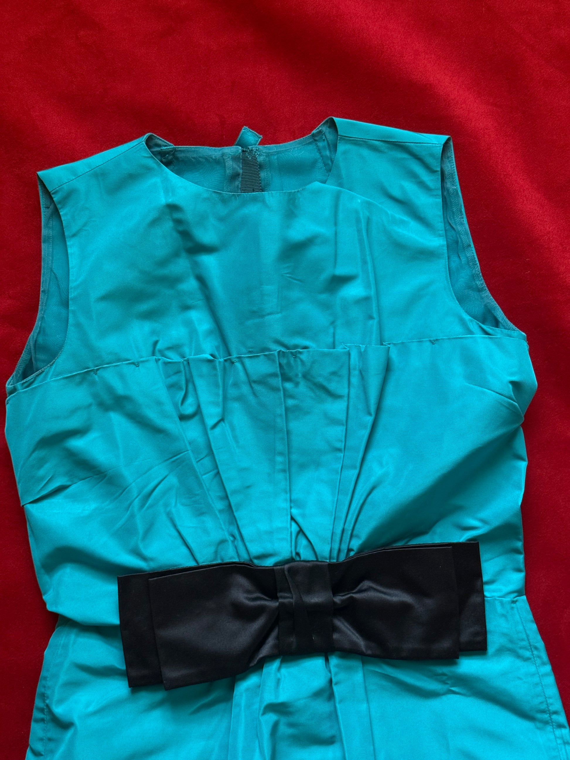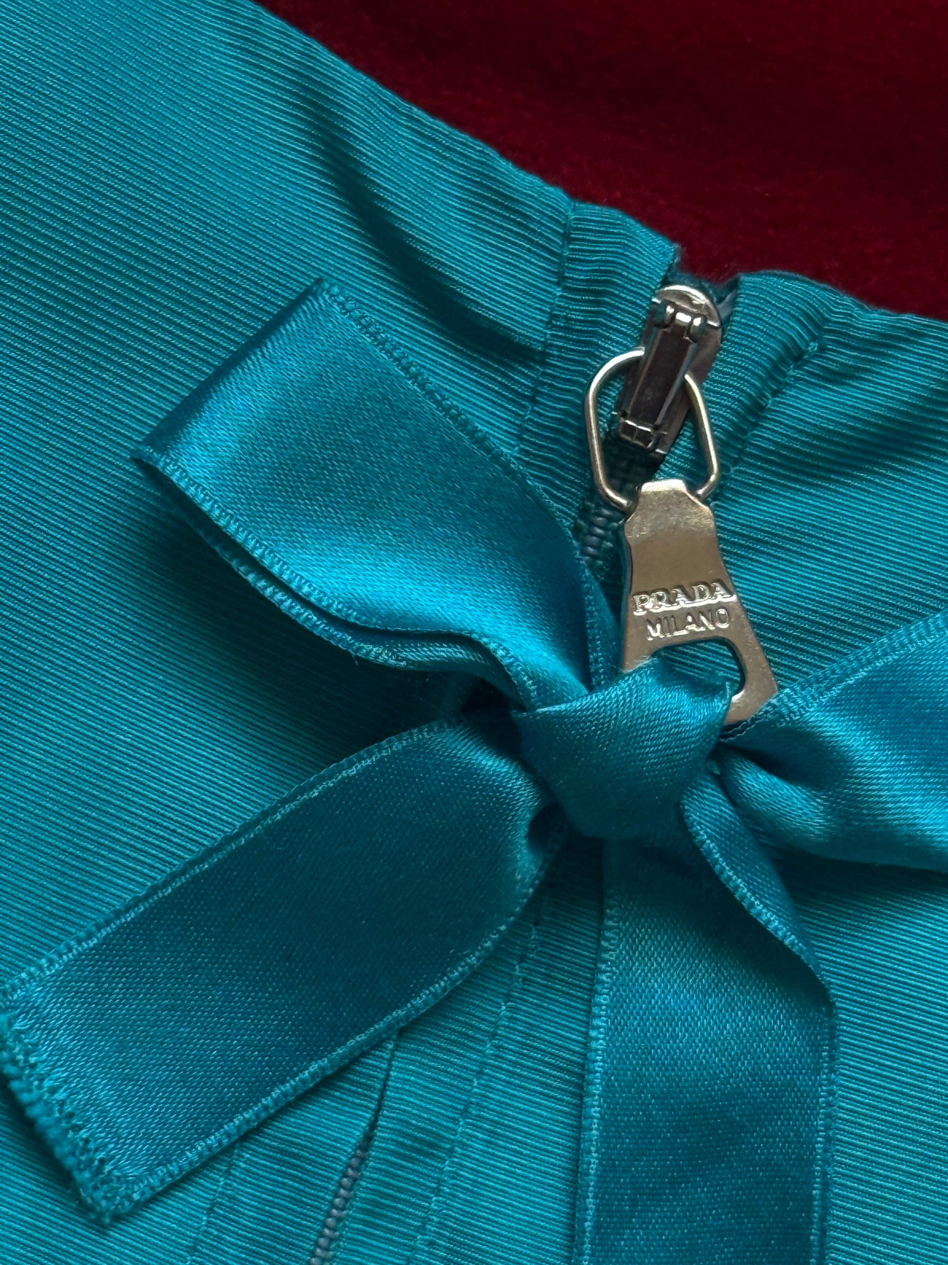 Abito Prada in tessuto increspato turchese con fiocco nero