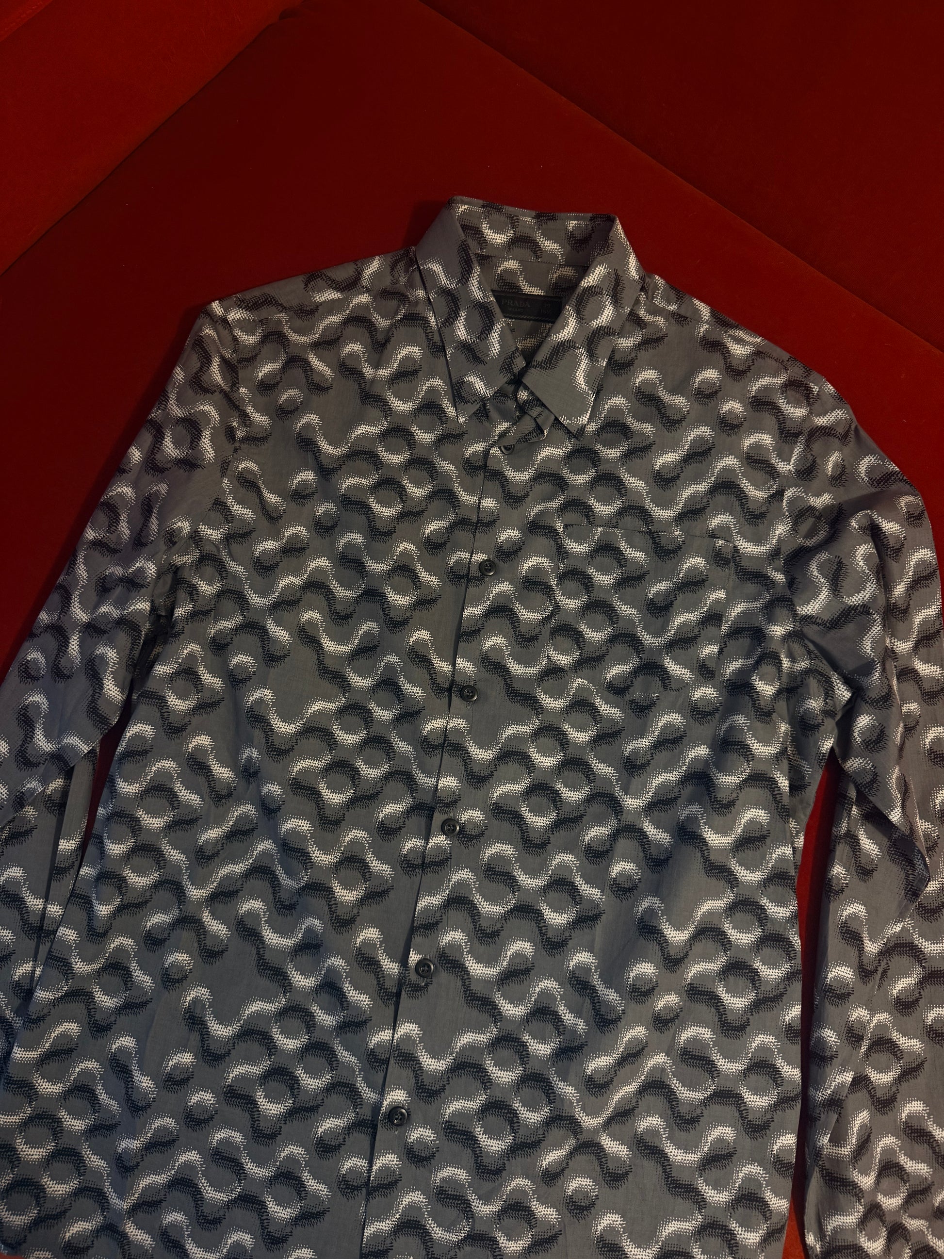 Collezione Prada molto ricercata e amata, questa camicia riprende una stampa "molecule" che ha caratterizzato tutta la collezione. La camicia è da uomo, ma assolutamente utilizzabile anche da donna.