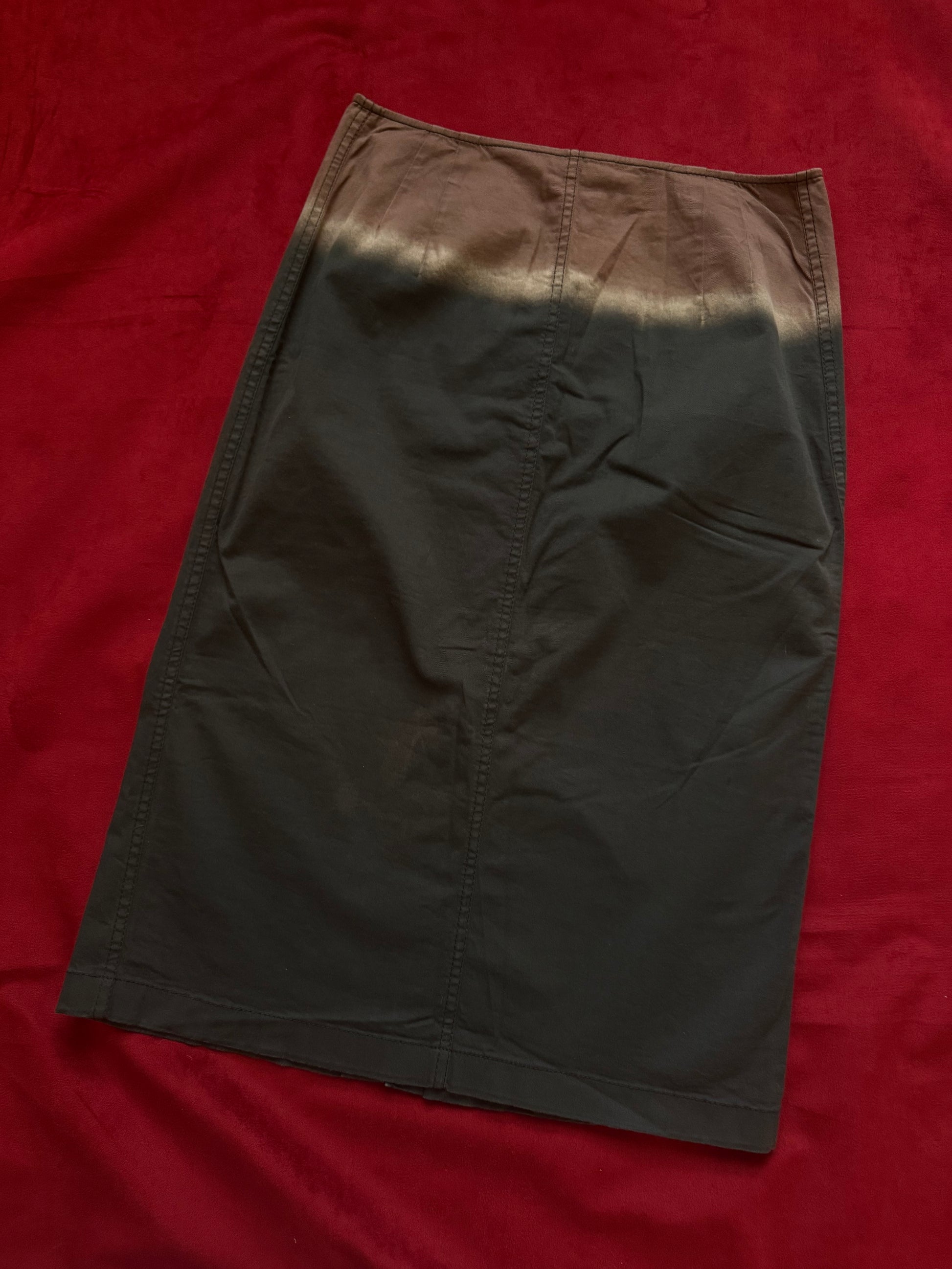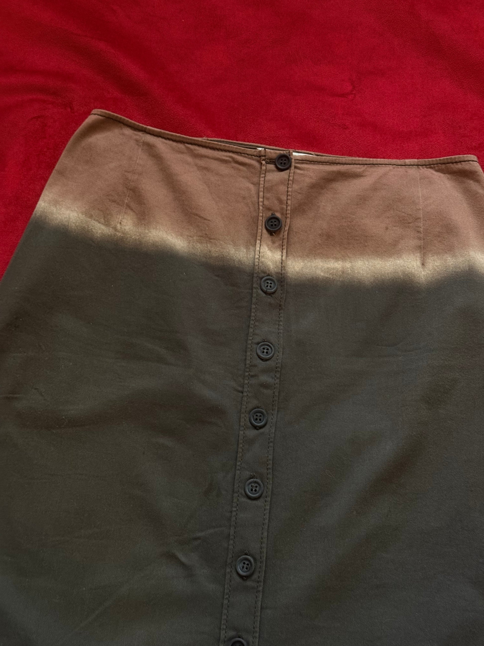 Gonna dritta a vita alta, con bottoni sul davanti. Effetto sfumato nella parte alta. Piccolo alone sulla parte posteriore, quasi impercettibile, segnalato in foto.